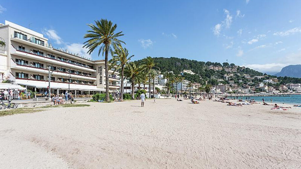 Záliv Sóller s písečnou pláží a pozvolným vstupem do moře je oddělen pobřežní promenádou, lehátka a slunečníky za poplatek.