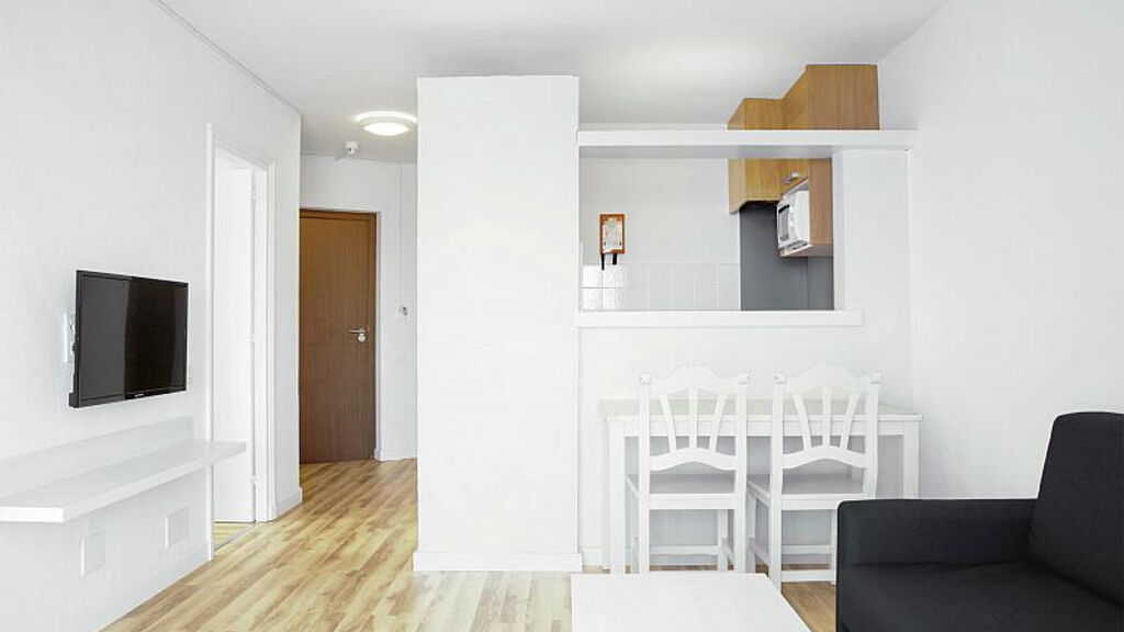 Apartmá s 1 ložnicí (AP1): koupelna/WC (vysoušeč vlasů), klimatizace, obývací pokoj s pohovkou, kuchyňský kout (mikrovlnná trouba), oddělená ložnice, TV/sat., telefon, balkon nebo terasa.