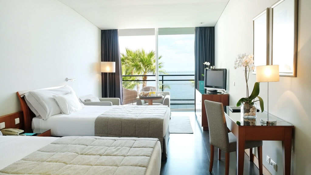 Pláž:Přístup do moře u hotelu ze schůdků. Veřejné koupaliště (lido, vstup za poplatek) cca 450 m, malá kamenitá veřejná pláž Praia do Gorgulho cca 600 m.