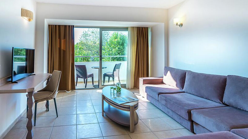 DR: koupelna/WC (vysoušeč vlasů), klimatizace, telefon, minibar (denně doplňovaný), TV/sat., trezor, balkon nebo terasa. JS: viz DR, obávací pokoj, oddělená ložnice. 42m2. SUF: viz DR, obývací pokoj a minikuchyňka, 2 ložnice, 2 koupelny. 68m2.