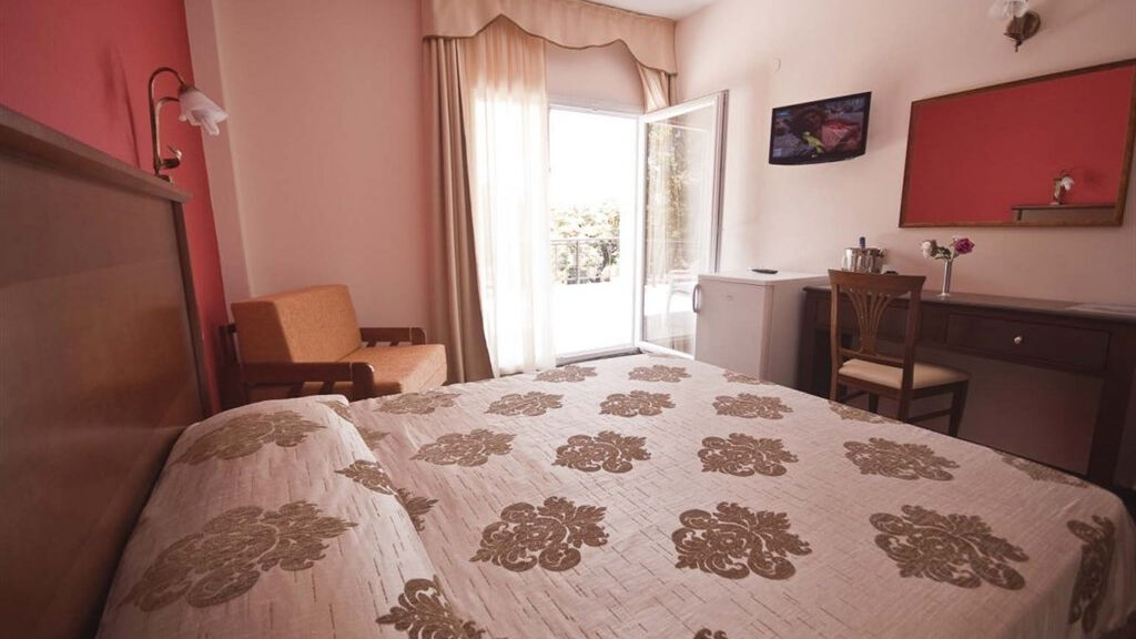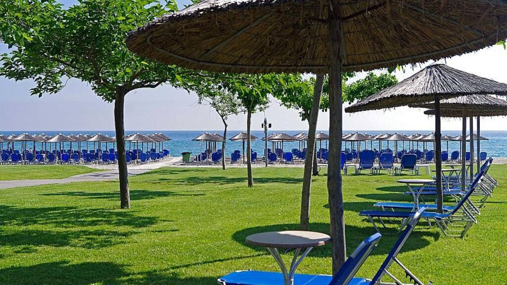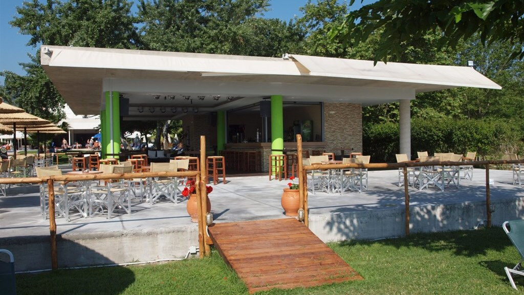 Vybavení hotelu:V udržované subtropické zahradě. Vstupní hala s recepcí (trezor za poplatek), TV koutek, restaurace, bar včetně baru na pláži, venkovní bazén s terasou na slunění a lehátky a slunečníky zdarma, dětský bazén, řecká taverna u pláže,