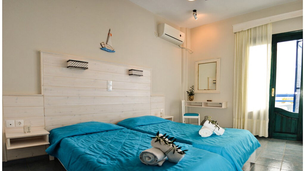 UBYTOVÁNÍ Hotel nabízí ubytování ve dvoulůžkových pokojích rozmístěných ve čtyřech dvoupodlažních budovách. Pokoje jsou situované do zahrady nebo mají boční výhled na moře. Všechny pokoje mají vlastní koupelnu se sprchovým koutem a WC, fén, telefon, SAT/TV, WIFI připojení ZDARMA, balkón nebo terasu, minibar. Klimatizace za poplatek 7 EURO/den a trezor na pokoji za 10 EURO/ týden. Dětská postýlka na vyžádání zdarma.