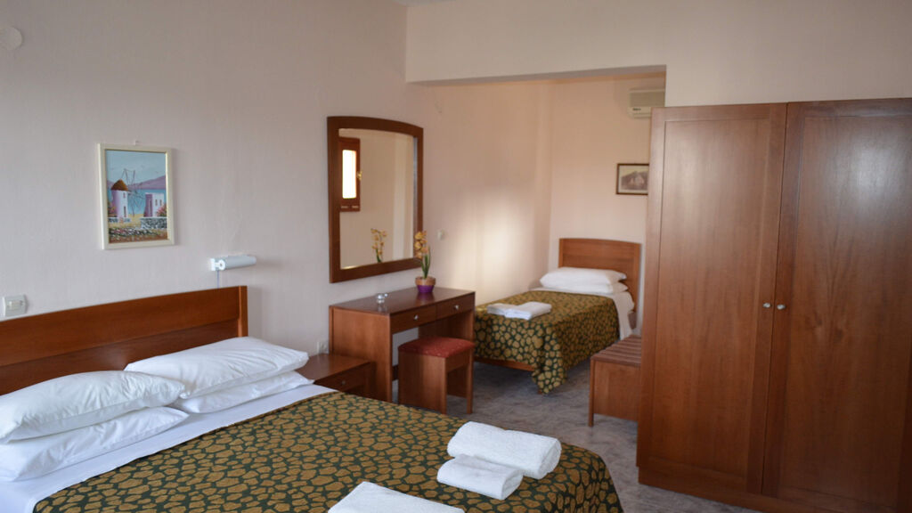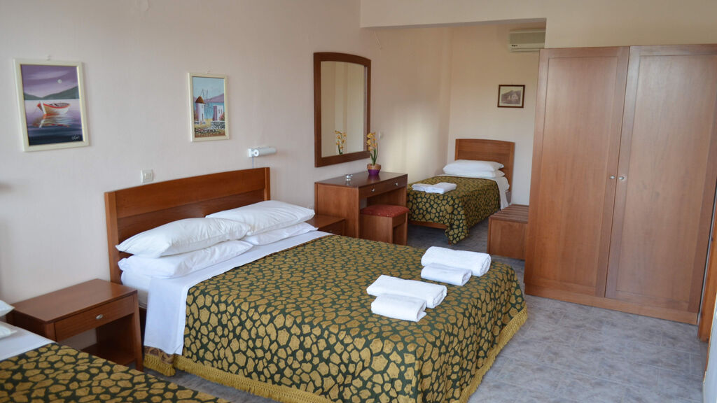 VYBAVENÍ Recepce, Wi-Fi na pokoji zdarma, trezor za poplatek. Taverny i supermarkety v blízkosti ubytování. Možnost využití bazénu v taverně Nina. Doporučujeme jogovým pobytům. Plocha na cvičení se stříškou a krásným výhledem na moře a okolí městečka.