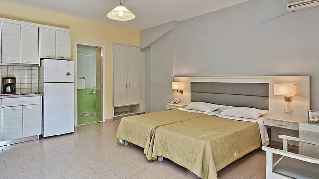 dvoulůžková studia s možností přistýlkysociální zařízení (WC, sprcha, fén)kuchyňský kout (lednice, vařič, základní nádobí)klimatizace (za poplatek cca 7 €/den), telefonbalkon nebo terasa