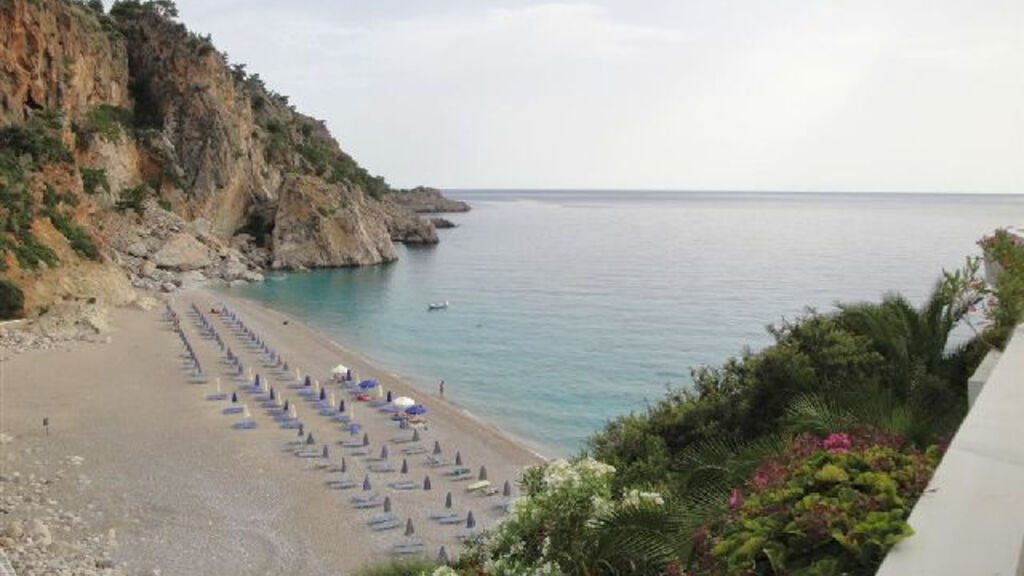Krásná písečnooblázová pláž cca 60 m pod komplexem studií přístupná po schodech nebo okolo po hlavní cestě. Lehátka a slunečníky za poplatek.