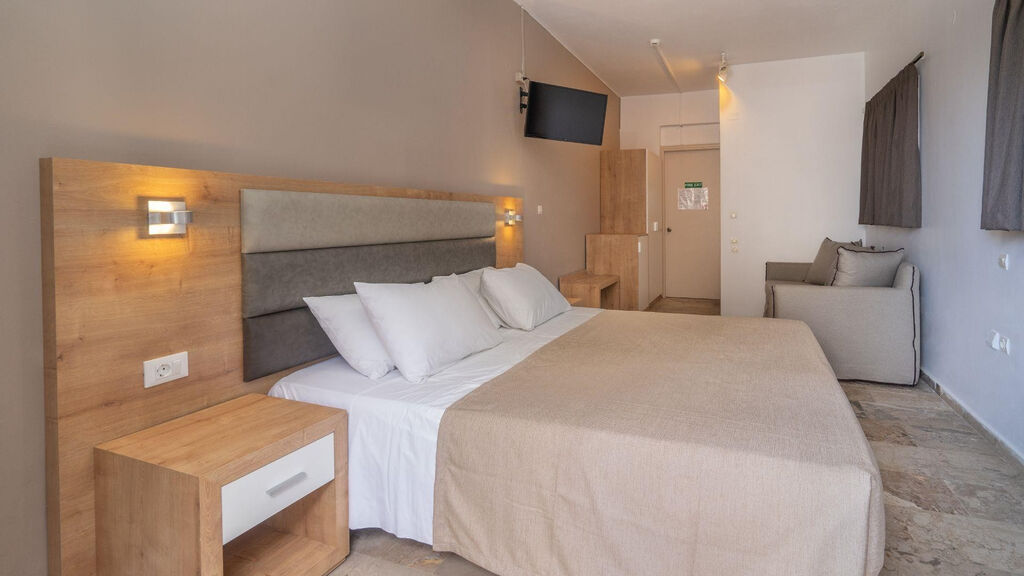 Vybavení pokojů:Dvoulůžkový pokoj, Částečný výhled na moře: koupelna/WC (vysoušeč vlasů), klimatizace zdarma, telefon, TV/sat., trezor za poplatek, lednička, balkon nebo terasa, částečný výhled na moře.