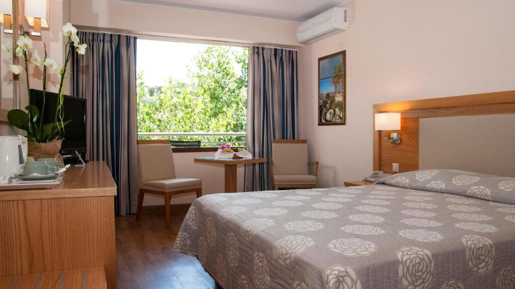 Vybavení pokojů:Dvoulůžkový pokoj , Výhled zahrada: koupelna/WC (vysoušeč vlasů, osušky na pláž), minilednička, TV/sat., rádio, trezor za poplatek, individuální klimatizace, balkon nebo terasa.