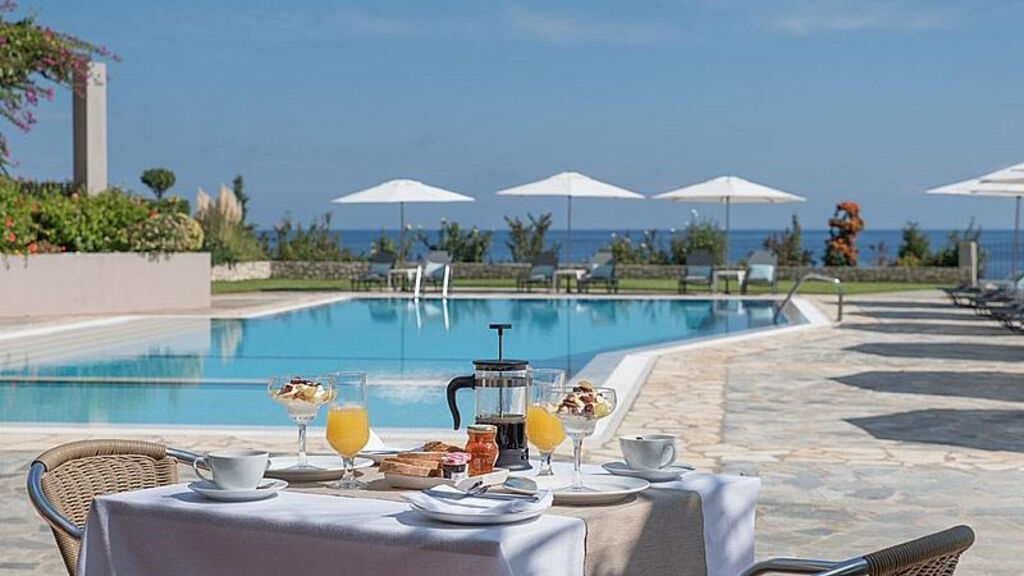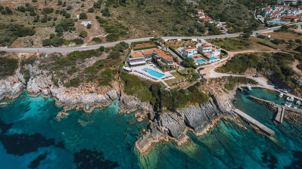Hotel se nachází přímo u moře, na skalnatém pobřeží. Nejbližší restaurace je vzdálena cca 1 km, supermarket, bar a autobusová zastávka přibližně 2 km. Hlavní město Argostoli je 38 km, letiště 39 km.