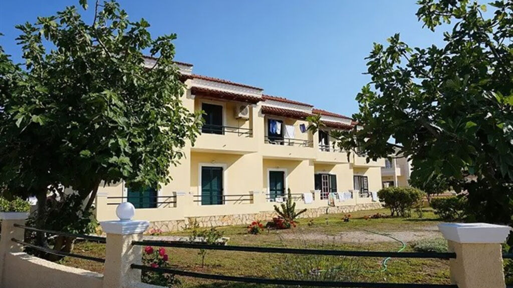 apartmánový dům je postaven v zahradě stranou od ruchu letoviska, asi 80 m od oblázkové pláže s pozvolným vstupem do moře s písčitým dnem. V okolí domu přímo u pláže je množství obchodů, restaurací, taveren a barů. Centrum letoviska Acharavi, které je vzdálené cca 500 m, se vyznačuje bohatým nočním životem.