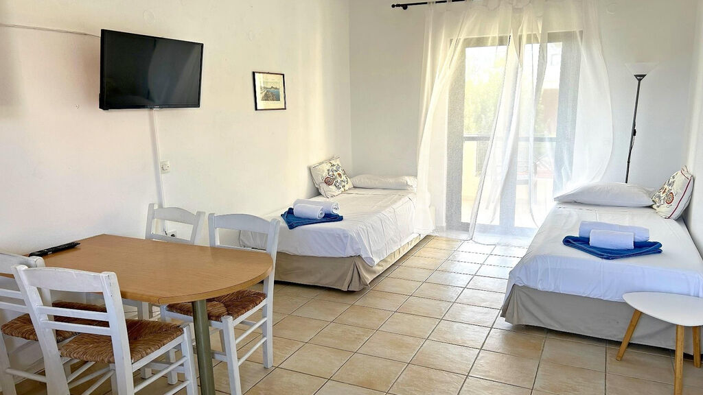 Vybavení pokojů:Studio: koupelna/WC, vysoušeč vlasů, trezor, klimatizace (za poplatek), TV, lednice, zařízená a plně vybavená kuchyň.
