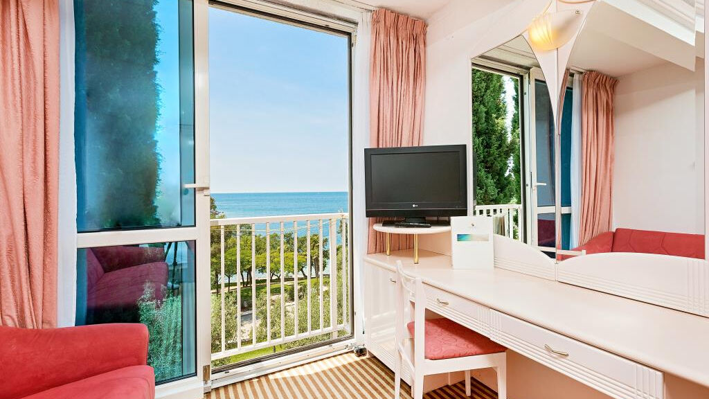 Vybavení pokojů: Standardní pokojindividuálně ovladatelná klimatizace, telefon, LCD TV se satelitním příjmem, minilednice, vlastní sociální zařízení (koupelna, vysoušeč vlasů, WC), trezor (zdarma), balkon nebo terasa, Wi-Fi (zdarma), Ubytování za příplatekPokoj s bočním výhledem na moře - stejné vybavení jako standardní pokoj, Superior - prostornější pokoje, navíc mají pohovku nebo 3. lůžko, zařízený balkon, výhled do zahrady, Rodinný pokoj – ložnice a obývací pokoj s pohovkou, zařízený balkon, výhled do zahrady, Rodinný pokoj Superior - 2 ložnice a obývací pokoj s pohovkou, zařízený balkon, výhled do zahrady, Suite - ložnice a oddělená obývací část, 2 samostatné koupelny, zařízený balkon, výhled do zahrady,