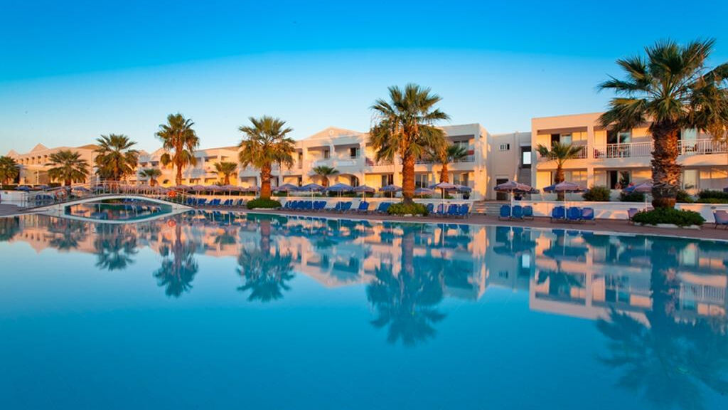 Moderní hotelový komplex se nachází na jihozápadním pobřeží ostrova v letovisku Agios Georgios. Předností hotelu je jeho umístění přímo u krásné písčité pláže. Areál obklopený zahradou nabízí ideální podmínky pro relaxaci i aktivní strávení dovolené. Hosté mají k dispozici tenisové kurty, sportovní halu, amfiteátr a pestré animační programy.