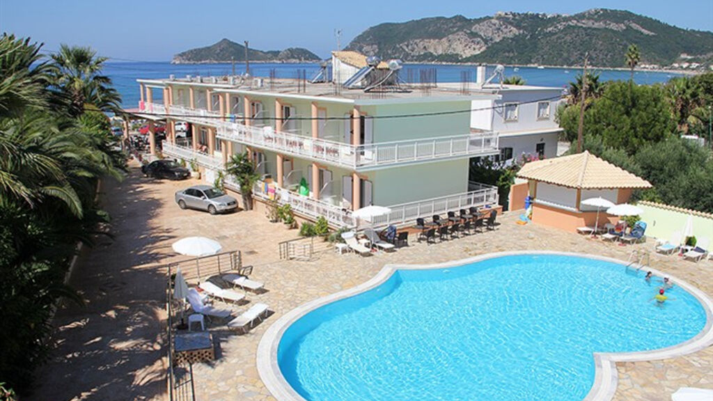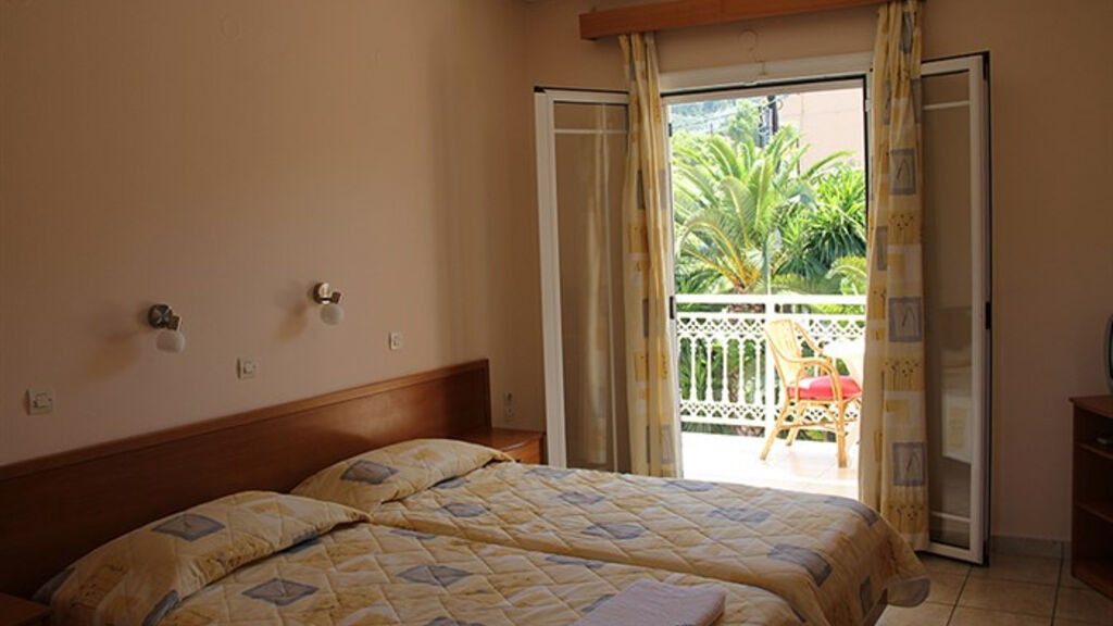 Příjemný rodinný hotel leží pouhých 50 m od dlouhé písečné pláže, od které je oddělen jen místní komunikací, nedaleko centra letoviska Agios Georgios. Jedná se o menší hotel rodinného typu, který se skládá ze dvou budov, v hlavní budově jsou recepce, restaurace a pokoje, v další pak jsou pokoje i studia. Vynikající domácí strava (vaří manželka majitele), pěkný hotel za dobrou cenu!