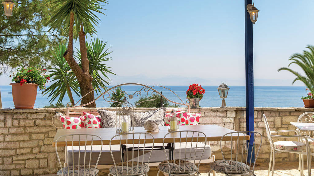 Hotel v srdci klidné oblasti Agios Ioanis Peristeron, centrum s obchody Benitses 2,5 km, hlavní město Kerkyra 15 km (spojení linkovým autobusem), letiště 14 km.