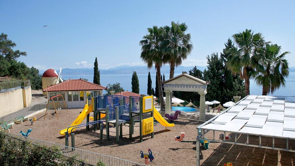 Tento komfortní hotel se nachází na řeckém ostrově Korfu v zátoce Mirabello. Hotel byl postaven na zalesněném svahu, několik metrů nad krásnou oblázkovou pláží.