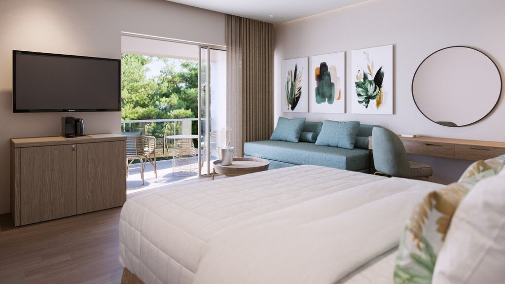Pokoje s balkonem nebo terasou a sociálním zařízením (sprcha nebo vana, WC, fén) jsou klimatizovány (klimatizace zdarma) a vybaveny TV/SAT, telefonem, rádiem, Wi-Fi (zdarma), trezorem (zdarma) a chladničkou. K dispozici je také kávový a čajový servis. Na vyžádání a za příplatek pokoje s výhledem na moře, pokoje Superior s možností jedné přistýlky, rodinné pokoje a Suity.