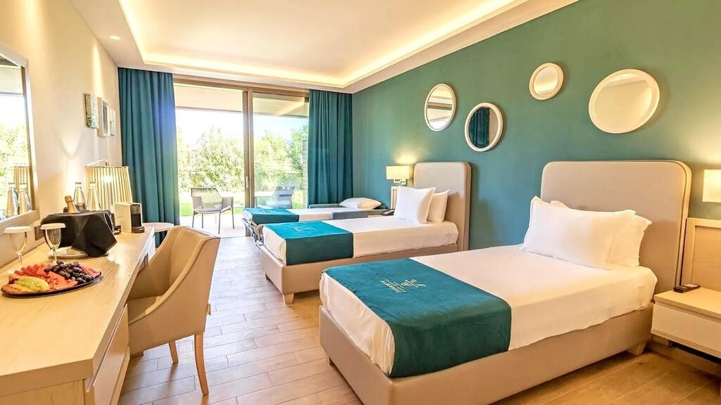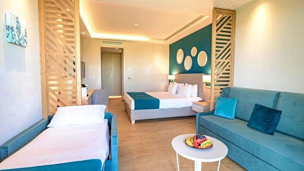 Vybavení hotelu:Hotelový komplex v udržované zahradě, kompletně bezbariérový, celkem 180 pokojů, vstupní hala s recepcí, restaurace, lobby bar, střešní bar, fitness, SPA, minimarket, obchod se suvenýry. V areálu hotelu bazén, dětský bazén, bar u bazénu, menší aquapark se skluzavkami (zdarma pro klienty s all inclusive). Lehátka a slunečníky v areálu hotelu zdarma.