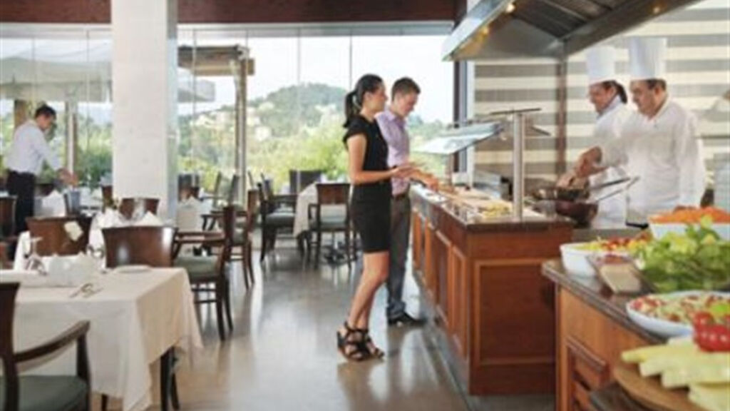 Snídaně formou bufetu (07.00–10.30 hod.) Oběd formou bufetu (12.30–15.00 hod.) Večeře formou bufetu (18.30–21.30 hod.) Večeře v restauraci à la carte (čínské speciality, nutná rezervace) Lehký snack (10.00–18.00 hod.) Vybrané alkoholické a nealkoholické nápoje místní výroby (10.00–24.00 hod.) 3x týdně tematická večeře