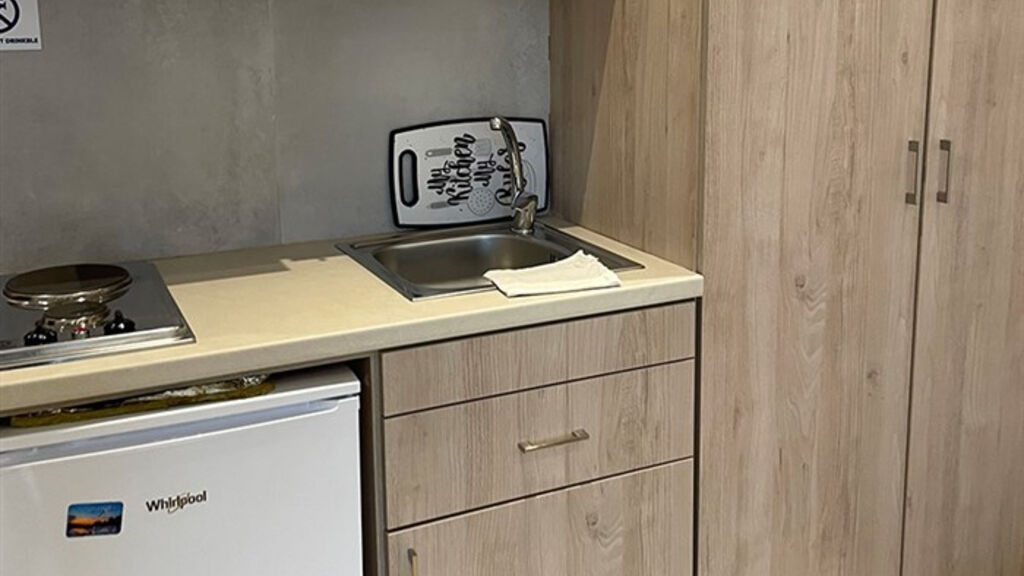 dvoulůžková studia, dvoulůžková studia s možností přistýlky, koupelna s toaletou, fén, kuchyňský kout (lednice, vařič, mikrovlnná trouba, základní nádobí, kávovar, toaster), klimatizace, trezor, SAT/TV, Wi-Fi, telefon, balkon nebo terasa,