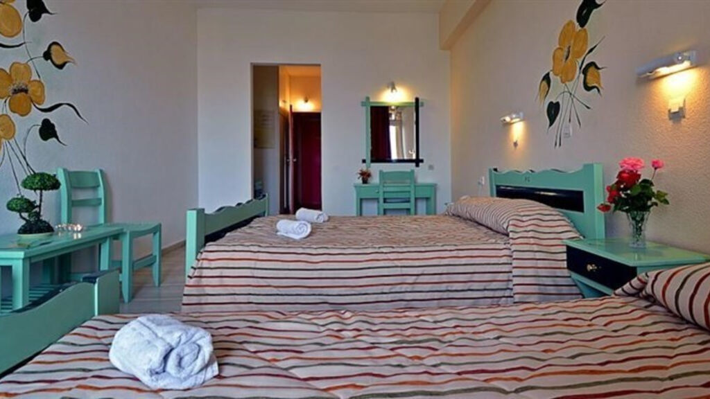 Kompletně zrekonstruované pokoje s balkonem nebo terasou a sociálním zařízením (sprcha nebo vana, WC, fén) jsou klimatizovány (klimatizace zdarma) a vybaveny TV/SAT, telefonem a chladničkou. Možnost dvou přistýlek. Maximální obsazenost dva dospělí a dvě děti nebo tři dospělí a jedno dítě.