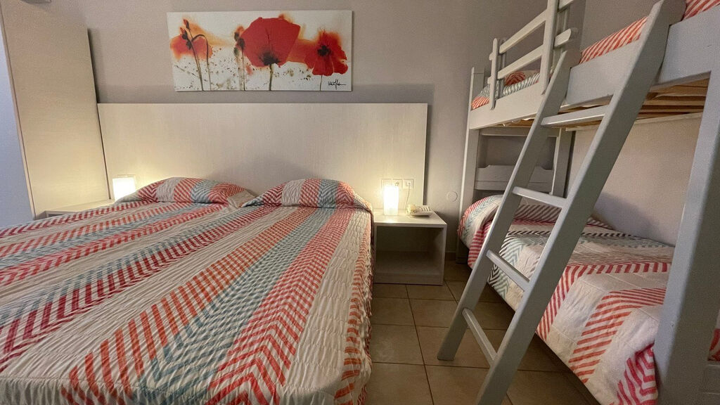 Dvoulůžkový pokoj (DRST0): koupelna/WC (vysoušeč vlasů na vyžádání na dopozit), klimatizace, TV/sat., lednička, trezor na recepci (za poplatek), balkon nebo terasa, starší vybavení. Dvoulůžkový pokoj Výhled moře (DRSV0): viz DRST0, výhled na moře. Dvoulůžkový pokoj Superior (DRSTS): viz DRST0, vysoušeč vlasů, renovované, trezor. Dvoulůžkový pokoj Superior Výhled moře (DRSVS): viz DRSTS, výhled na moře. Rodinný pokoj (FRST0): viz DRST0, prostornější s palandou pro děti. Rodinný pokoj 2 ložnice (FR2ST0): viz DRST0, 2 oddělené ložnice (v jedné může být palanda) Rodinný pokoj Superior (FRSTS): viz DRSTS, prostornější s palandou pro děti.