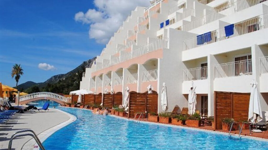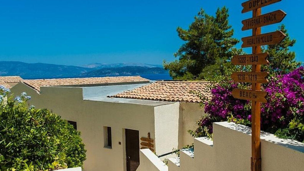 Moderní hotelový komplex hlavní budovy a bungalovů v klasickém řeckém stylu s krásným výhledem na moře a město Korfu je začleněn do svahů nad mořem s olivovníky a borovicemi cca 500 m od oblíbeného letoviska Nissaki a 25 km od hlavního města Korfu a letiště. Hotel nemá bezbariérový vstup, nedoporučujeme osobám se sníženou pohyblivostí.