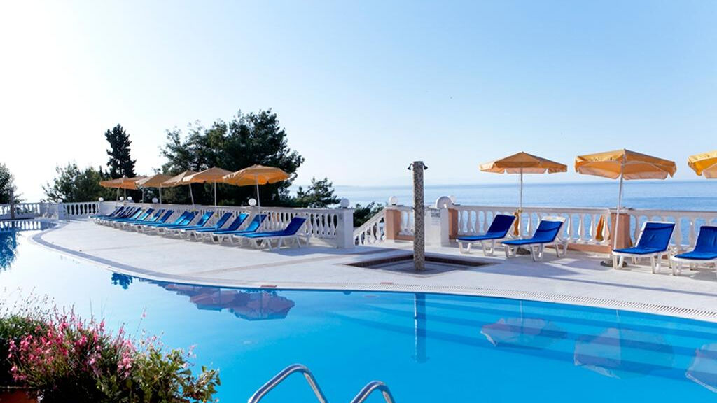 Moderní hotelový komplex je zasazen do kopce vypínajícího se nad písčito-oblázkovou pláží v oblasti Nissaki. Tento exkluzivní hotel s krásným výhledem zasazený do klidného prostředí poskytuje služby na vysoké úrovni. Zastávka místní autobusové linky zajišťující spojení s hlavním městem ostrova se nachází přímo před hotelem. Vzhledem ke své poloze není hotel vhodný pro klienty s omezenou pohyblivostí. Poloha hotelu: centrum oblasti Nissaki cca 500 m, hlavní město Korfu cca 25 km, letiště cca 25 km.