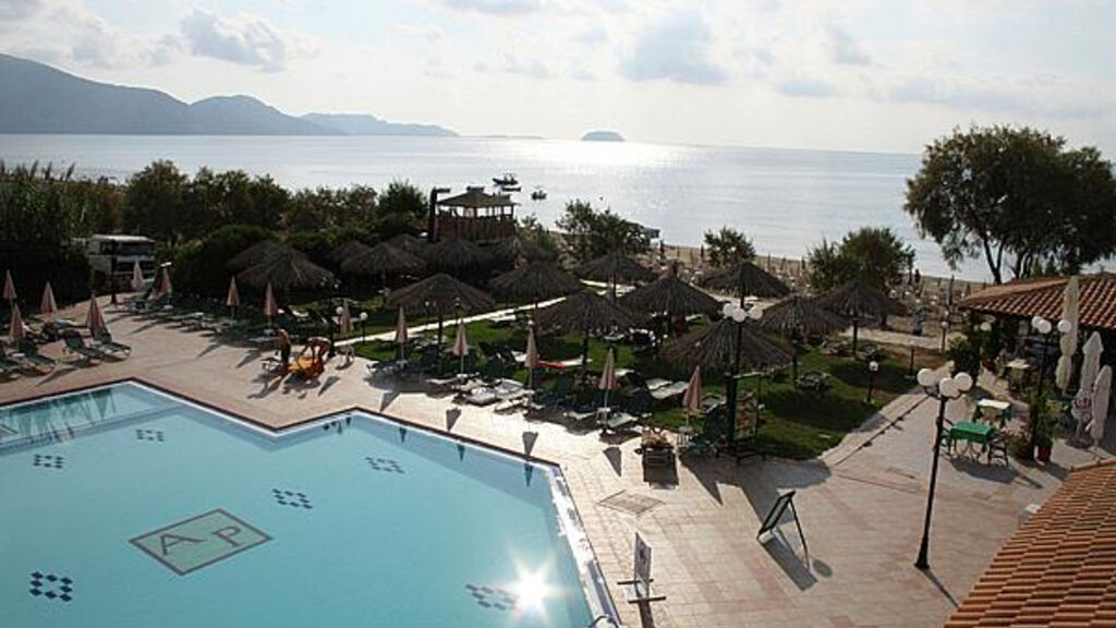 Přímo u dlouhé písečné pláže. Živé centrum Laganas s mnoha obchody, bary, restauracemi a možnostmi zábavy cca 800 m. Možnost drobných nákupů v blízkosti hotelu. Hlavní město Zakynthos cca 7 km (spojení linkovým autobusem, zastávka 150 m od hotelu).