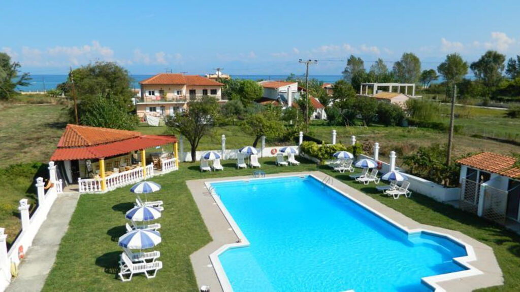 Dvoupatrová budova se dvěma křídly, recepce, lobby s TV sat., restaurace, 2 bary, WiFi připojení, zahrada, bazén, lehátka a slunečníky zdarma.