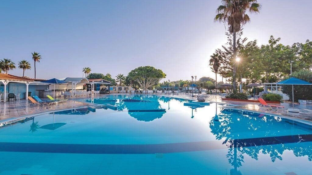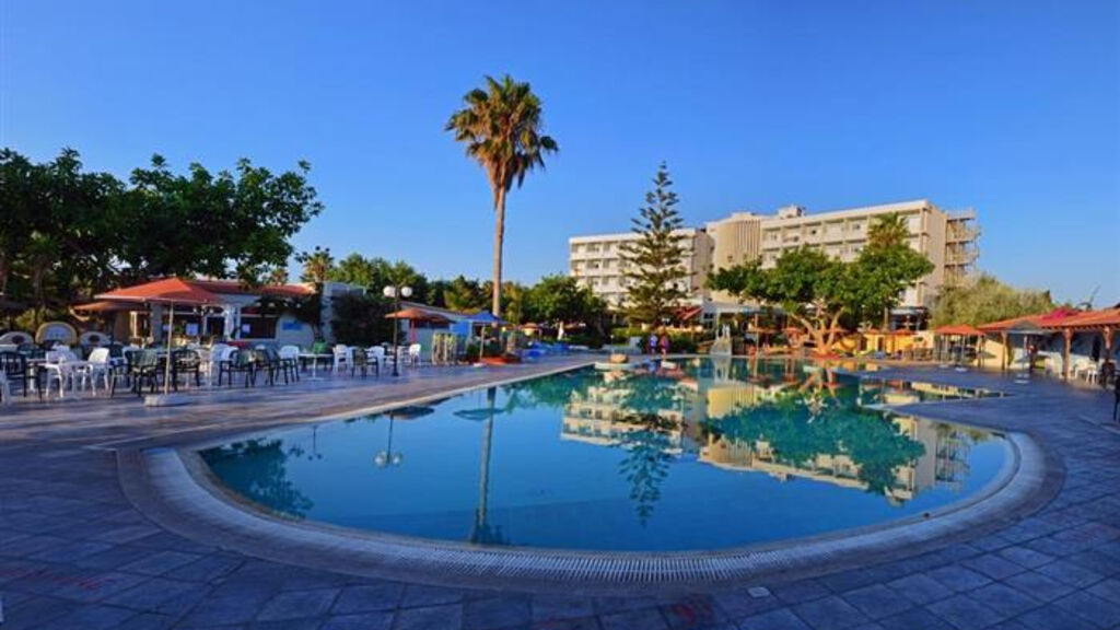 Vybavení hotelu:Hlavní a několik vedlejších budov (bungalovů, viladomů) v subtropické zahradě, vstupní hala s recepcí, výtahy, 2 restaurace, bary, taverna. Venku 2 bazény, terasy na slunění s lehátky a slunečníky zdarma.