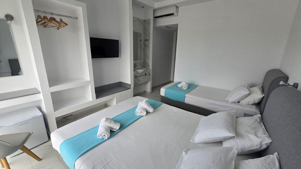Základní informace:Oblíbený zrekonstruovaný rodinný hotel se skládá z hlavní budovy a několika vedlejších budov, umístěných v krásné udržované zahradě. Leží v samém centru letoviska Marmari, u hezké písčité pláže s pozvolným vstupem do moře. Okolí hotelu láká k příjemným večerním procházkám do městečka, kde naleznete spoustu taveren, obchůdků a kaváren. Hotel doporučujeme všem věkovým kategoriím a rodinám s dětmi. Recepce hotelu je společná s hotelem Thalasea Beach Resort. Oficiální kategorie hotelu je 3*, naše hodnocení je 4*.