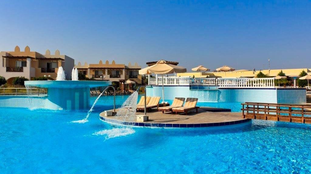 Vybavení hotelu:Hlavní budova a několik dvoupatrových bungalovů v zahradě, vstupní hala s recepcí, lobby bar, společenská TV místnost, hlavní restaurace s terasou, minimarket. Venku bazény, bazény pro děti, bar u bazénu, terasa na slunění s lehátky a slunečníky zdarma, osušky za poplatek.