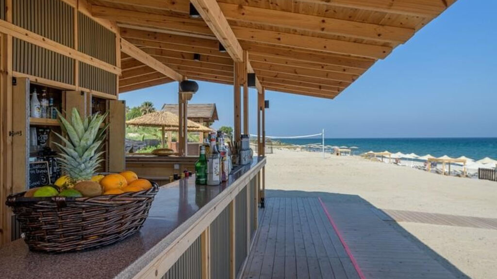 Písečná pláž (oceněná certifikátem Modrá vlajka) se nachází cca 500 m od hotelu, lehátka a slunečníky za poplatek.