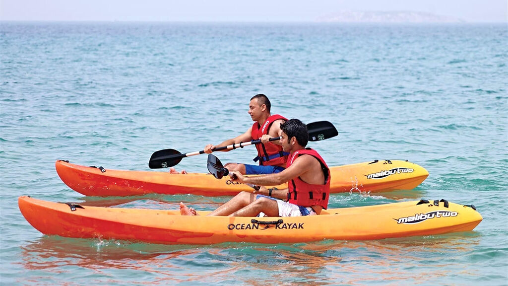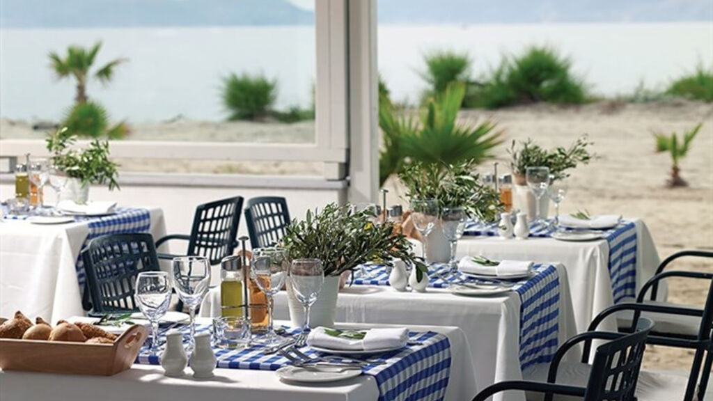 Vybavení hotelu:329 pokojů, hotelový komplex v několika budovách. Vstupní hala s recepcí, hlavní restaurace, italská a řecká restaurace à la carte, taverna, bary, minimarket, konferenční prostory. Venku 6 bazénů, 4 bazény pro děi, 2 jacuzzi, 2 bary u bazénu, terasa na slunění, lehátka, slunečníky a osušky zdarma, bar u bazénu.