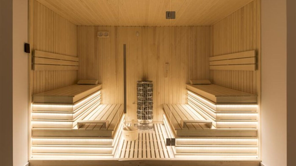 Wellness centrum (krytý bazén, sauna, parní lázeň, relaxační prostory), posilovna