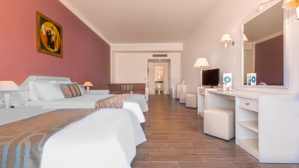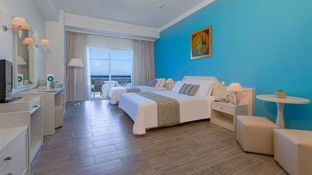Standardní pokoje s výhledem na hory nebo na moře s balkonem nebo terasou a sociálním zařízením (vana, WC, fén) jsou klimatizovány (klimatizace zdarma) a vybaveny TV/SAT, telefonem, trezorem (za poplatek) a chladničkou. Maximální obsazenost dva dospělí. V hotelu jsou k dispozici i Junior suity s bočním nebo přímým výhledem na moře (maximální obsazenost čtyři dospělí).