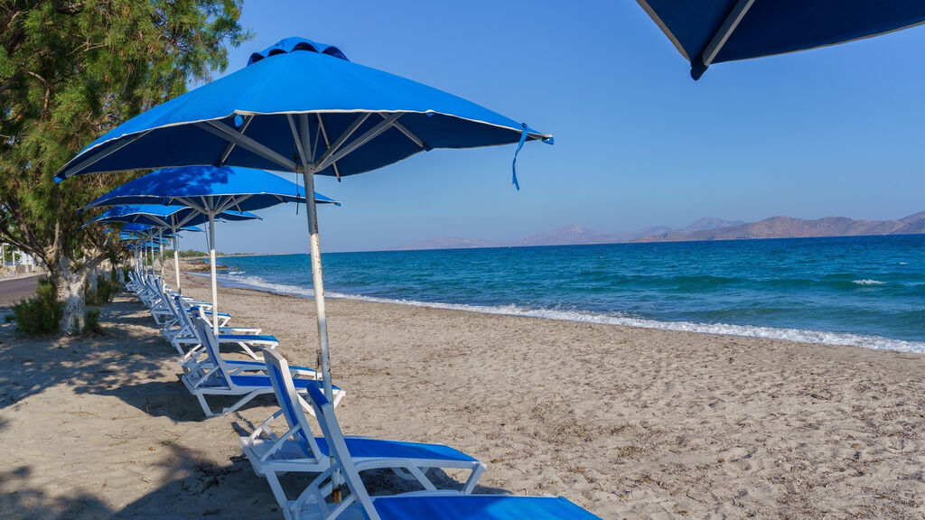 Písečná pláž se nachází cca 20 metrů od hotelu přes místní komunikaci; lehátka a slunečníky za poplatek.
