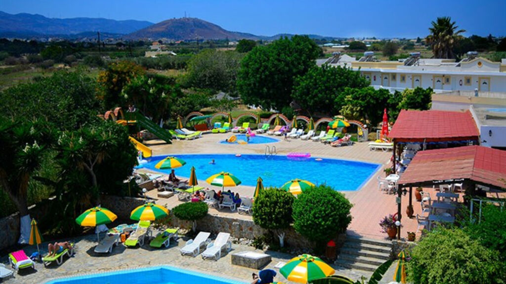 V krásné subtropické zahradě jsou dva velké bazény se skluzavkou a jeden malý pro děti. Lehátka a slunečníky u bazénů zdarma. K dispozici je také recepce (možnost pronájmu bezpečnostní schránky, cca 10 €/týden), Wi-Fi zdarma v blízkosti recepce, bar se SAT/TV, cocktail bar, pool bar, snack-bar, restaurace s domácí kuchyní za rozumné ceny.apartmány jsou obklopeny krásnou zahradou, kde můžete relaxovat a kde si vaše děti mohou hrát. Jedná se o rodinný hotel.