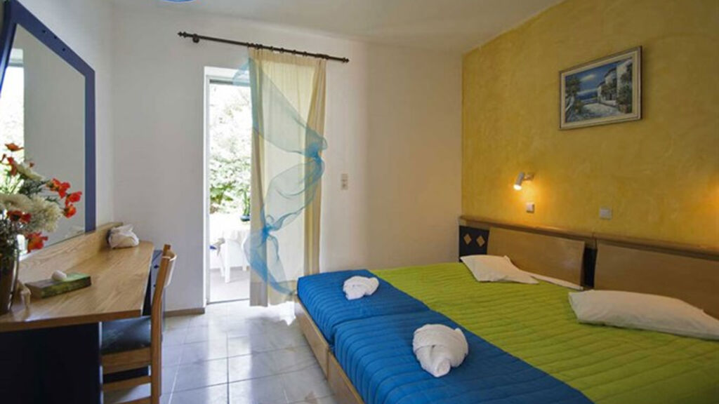 hotel nabízí dvoulůžková studia s možností 2 přistýlek. Pokoje jsou vybaveny koupelnou s WC, klimatizací, kuchyňkou, ledničkou, konvicí a balkónem nebo terasou.