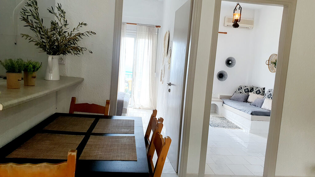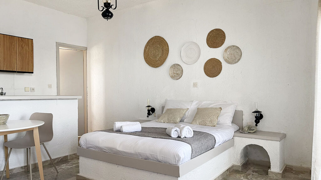 Dvoulůžkové studio s výhledem na moře je vybaveno vlastním příslušenstvím (koupelna, WC), klimatizací, TV, telefonem, kuchyňským koutem a balkonem nebo terasou.