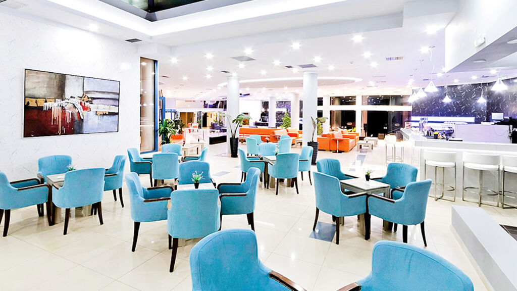Vybavení: Hostům je k dispozici prostorná vstupní hala s recepcí, úschova zavazadel, směnárna, klimatizované prostory, konferenční místnost, TV místnost, Wi-Fi připojení ve veřejných prostorách a na pokojích zdarma, minimarket, zahrada, hlavní restaurace s panoramatickým výhledem na moře, 2 á la carte restaurace, bazénový bar, plážový bar, velký venkovní bazén – 310m2 (lehátka a slunečníky u bazénů zdarma), vodní park se skluzavkami, dětský bazén, vyhřívaný vnitřní bazén, sluneční terasa, dětské hřiště, herna, denně animační programy pro děti i dospělé, fitness centrum, wellness centrum. Služby zdarma: stolní tenis, fitness centrum, sauna, turecké lázně, zumba, šipky, plážový volejbal, aerobik, vodní aerobic, dětské hřiště, animační programy. Služby za poplatek: služby wellness centra (masáže, kadeřnické a kosmetické služby), videohry, kulečník, hlídání dětí, služba praní a čištění prádla, potápěčské centrum, lékařská ordinace, půjčovna aut.