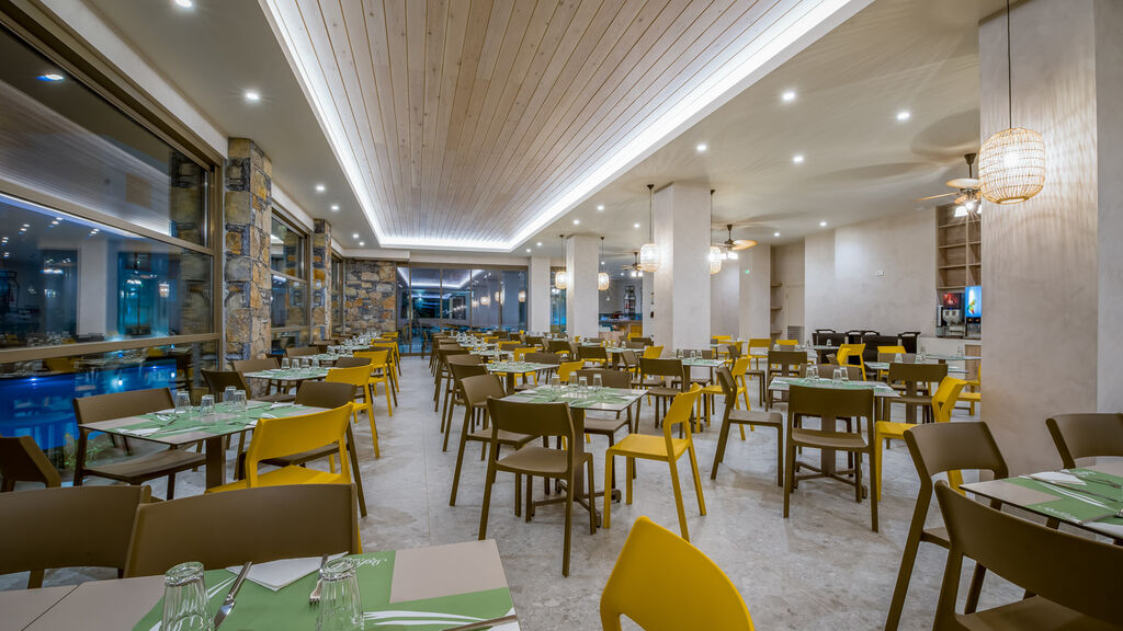 Vstupní hala, recepce, restaurace, a la carte restaurace, bary, Wifi a areálu hotelu zdarma, minimarket, trezor, parkoviště, dva bazény, tři dětské bazény se skluzavkami (10:00 - 18:00 otevřeny tobogány), lehátka a slunečníky u bazénů zdarma; za poplatek k půjčení: osušky, dětský kočárek, dětská židlička.