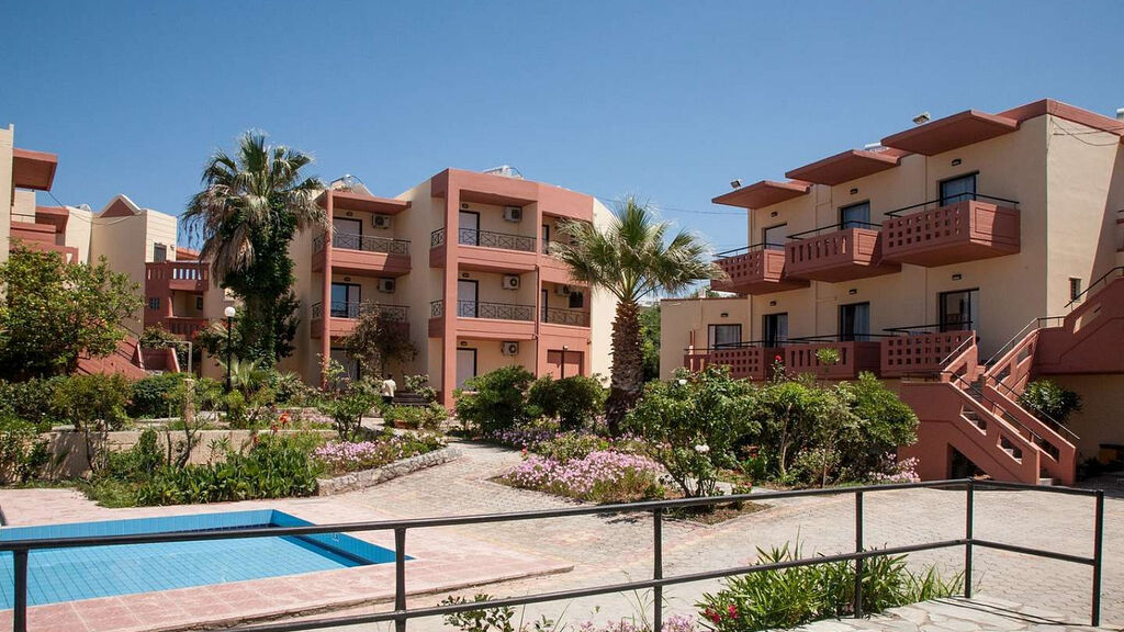 Příjemný komplex studií a apartmánů se nachází v rozkvetlé zahradě s bazénem ve vzdálenosti 300 m od písečné pláže a v blízkosti centra letoviska Agia Marina. Historické centrum města Chania je vzdáleno 8,5 km a je dostupné místní autobusovou dopravou. Ubytování nabízí svým hostům ubytování s vlastním kuchyňským koutem a klimatizací za poplatek. Atmosféra tohoto domu v blízkosti pláže je ideální volbou k příjemně strávené dovolené v blízkosti centra letoviska i historického města Chania.