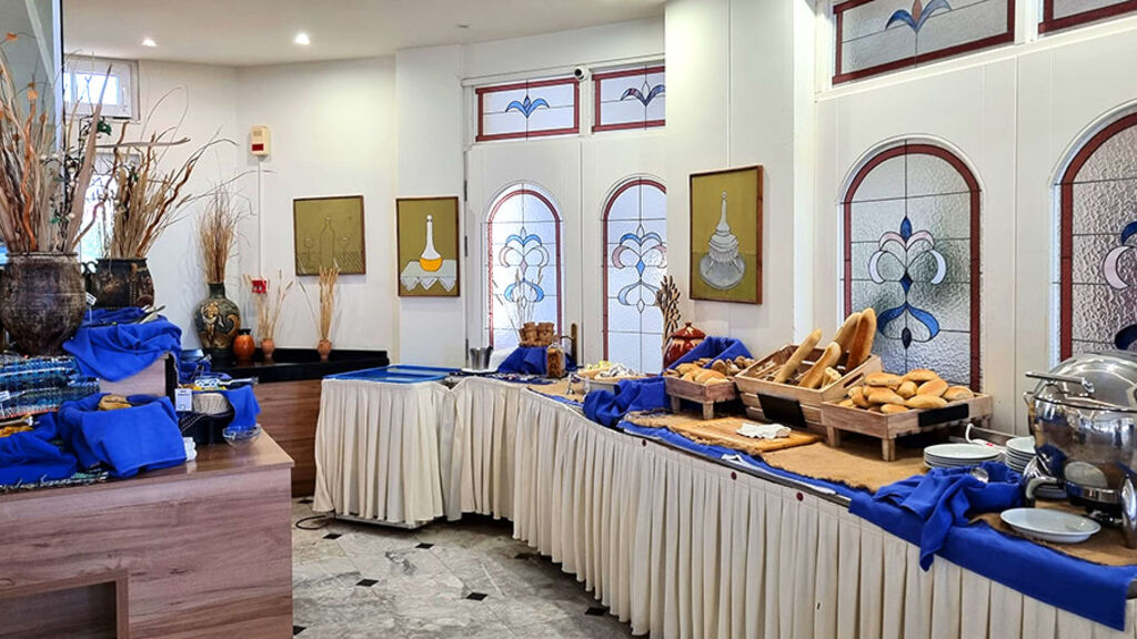 - Hlavní restaurace: 7.15–10.20 snídaně formou bufetu, 12.30–14.00 oběd formou bufetu, 18.30–21.30 večeře formou bufetu. U snídaně filtrovaná káva, čaj, voda, u oběda a večeře nealkoholické nápoje, pivo, víno