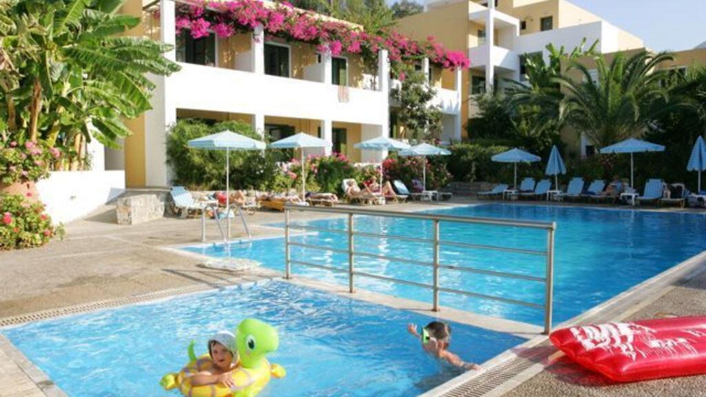 hotel obklopený olivovými háji, květinami a exotickými rostlinami se nachází v mírném kopci v malebné lokalitě letoviska Bali, odkud je krásný výhled na hory Talea Ori a celé letovisko. Vzdálenost od centra letoviska je do 500 m, letiště v Heraklionu je asi 55 km, vzdálenost od města Rethymno cca 30 km. Na hlavní silnici je zastávka autobusu se spojením do Rethymna a Chánie. V okolí hotelu je 5 písčitých pláží s promenádami a kavárnami nebo tavernami, některé pláže jsou obklopeny skalisky. Oficiální kategorie: C.