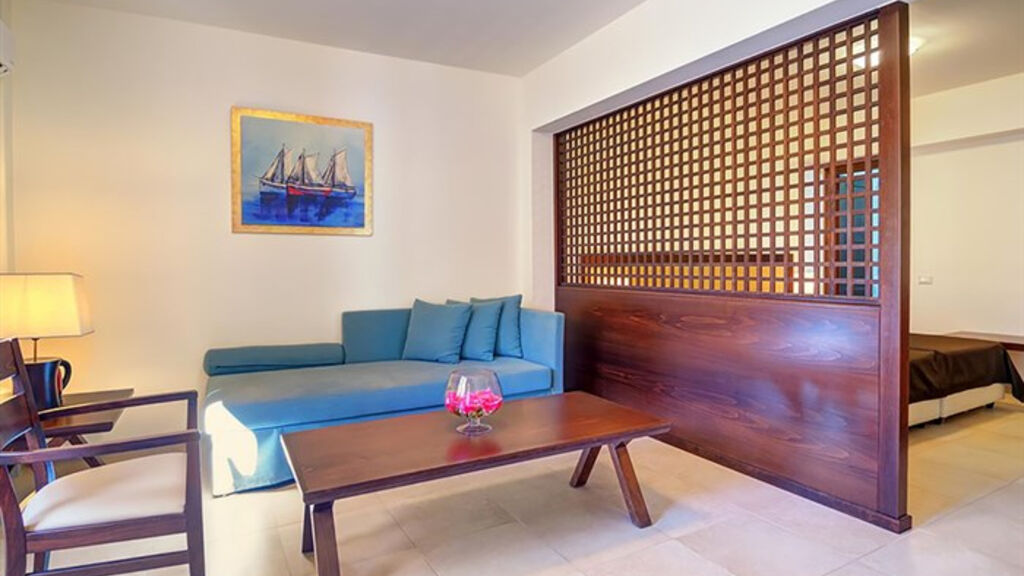 Dvoulůžkové pokoje se nacházejí v hlavní části hotelu a mají přímý nebo boční výhled na moře. Pokoje jsou vybaveny: koupelnou (WC, vana, fén), telefonem, sat TV, lednicí (minibarem na vyžádání), individuální klimatizací a balkonem nebo terasou. Sejf a připojení k internetu za poplatek. Úklid pokojů každý den, výměna ložního prádla a ručníků 4 x týdně.