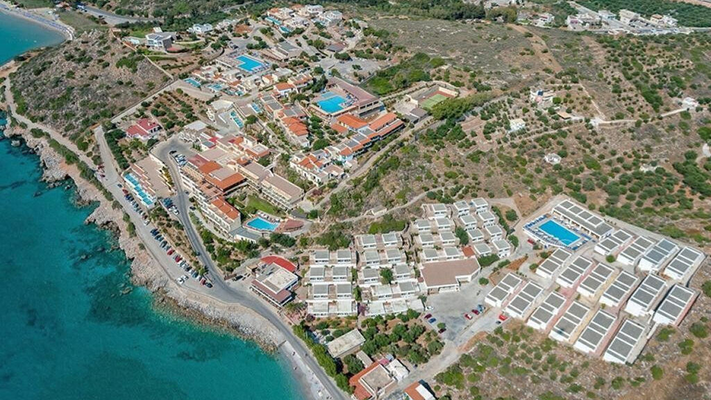 Stále se rozšiřující a vylepšovaný hotel Miramare Resort & Spa (jeden z majitelů je známý řecký architekt) je postaven v mírném svahu a nabízí úžasný výhled na záliv Mirabello a městečko Agios Nikolaos . Přímo u hotelu leží menší pláž, další v pohodlné pěší dostupnosti.