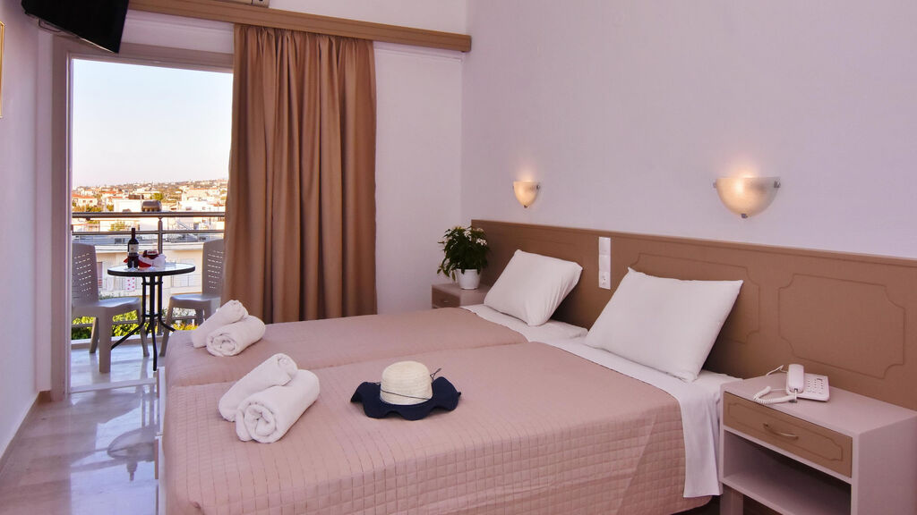 Moderní rodinný hotel se skládá z hlavní a vedlejší budovy, nachází se v blízkosti centra letoviska Analipsis, kde najdete restaurace, bary, obchůdky i tradiční atmosféru. Písečná pláž je vzdálena cca 300 m, město Hersonissos cca 1 km, autobusová zastávka cca 400 m. Doporučujeme klientům, kteří ocení blízkost pláže i centra.
