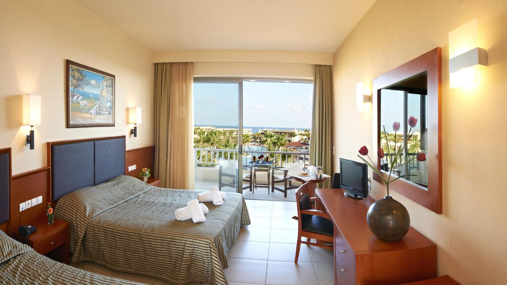 Vybavení pokojů:Dvoulůžkový pokoj, Výhled zahrada: koupelna/WC (vysoušeč vlasů), klimatizace, TV/sat., telefon, minilednice, set na přípravu čaje a kávy, trezor (za poplatek), balkon nebo terasa s výhledem na bazén.
