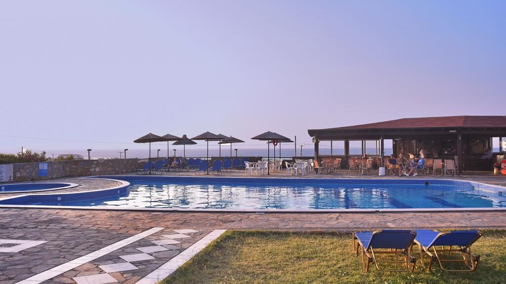 Vybavení hotelu: vstupní hala s recepcí, hlavní restaurace, taverna, bar u bazénu, lobby bar, společenská místnost s TV, bazén (lehátka a slunečníky zdarma, osušky za poplatek), dětský bazén, bazén se 3 skluzavkami, dětské hřiště, hotelový autobus do města Hersonissos (zdarma, 2× denně kromě neděle), Wi-Fi v lobby zdarma, připojení k internetu (za poplatek), výtahy, směnárna,